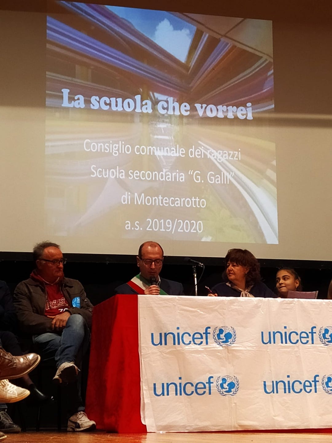 Il Consiglio ha esposto anche altre idee agli adulti, tratte dal programma con cui è stato eletto, appoggiato dagli studenti della secondaria presenti in platea. Il dibattito che ne è seguito, cui hanno partecipato pure alcuni genitori intervenuti, è stato introdotto dall'intervento della referente provinciale UNICEF Mirella Mazzarini, che ha inteso valorizzare questa iniziativa con la sua presenza.