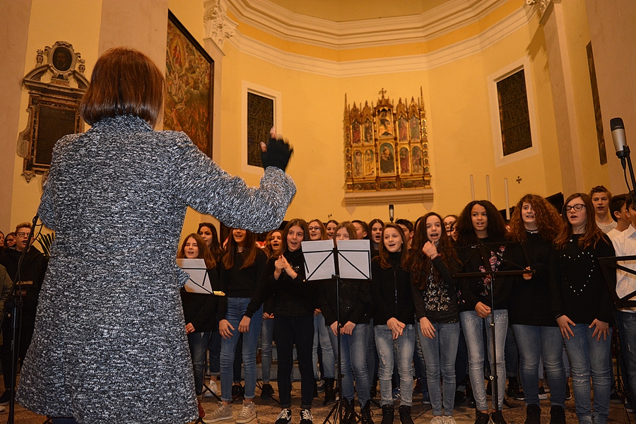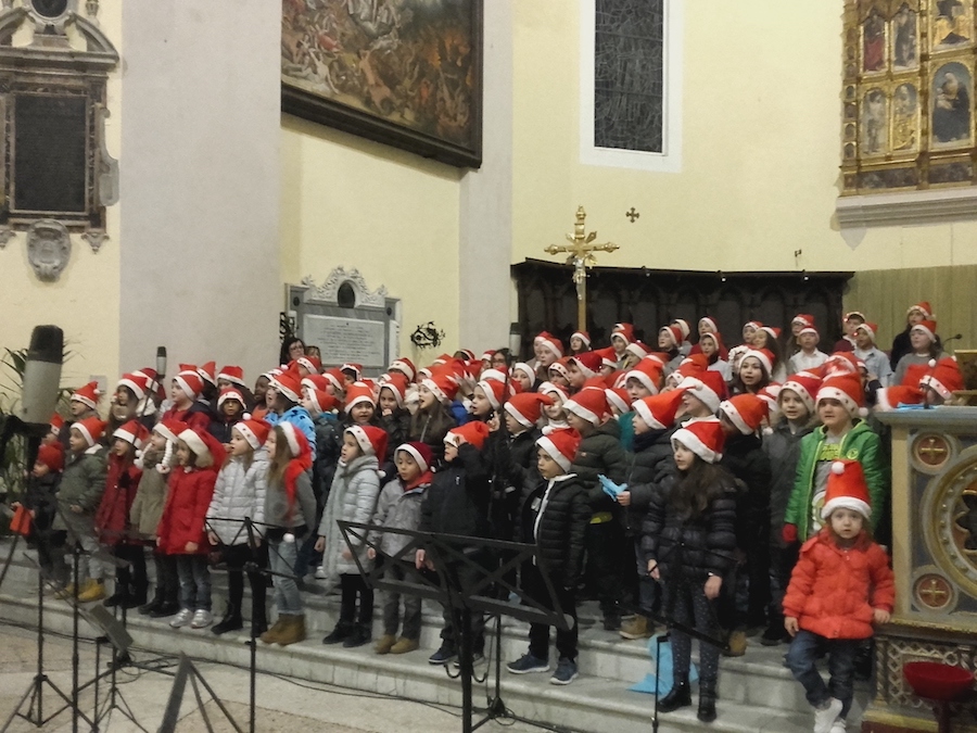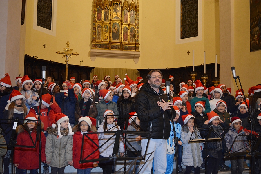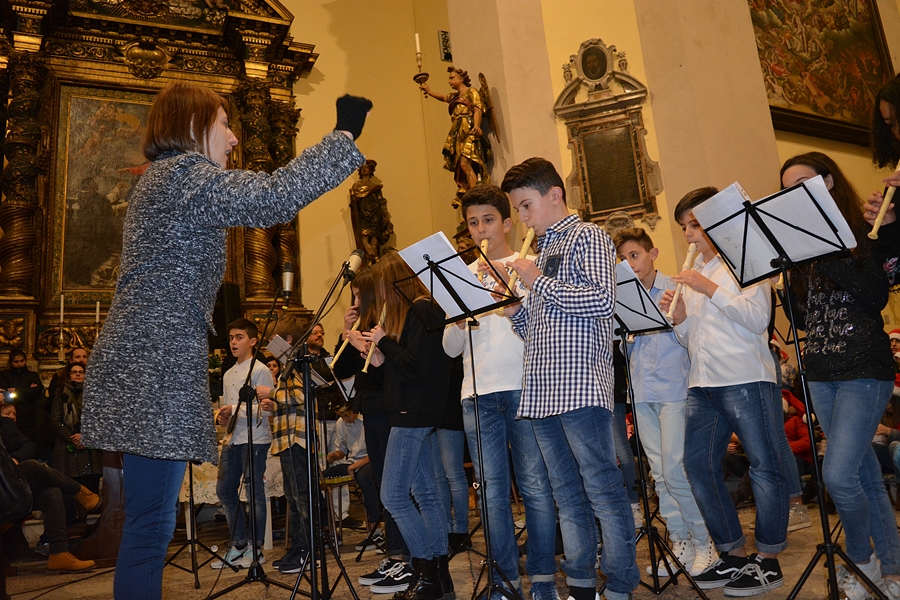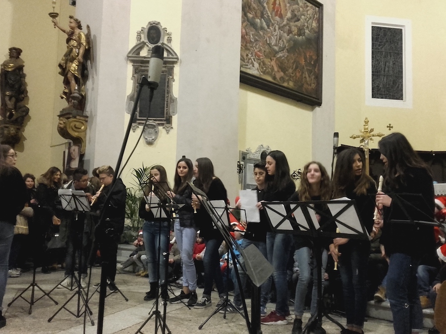 Dopo una breve saluto del Sindaco Andrea Bomprezzi, il coro degli alunni della scuola primaria, insieme alla classe prima della scuola secondaria, si è cimentato in canti inneggianti al Natale e alla pace universale, alternandosi con le esibizioni di musica strumentale dei ragazzi delle classi seconde e terze della scuola secondaria.