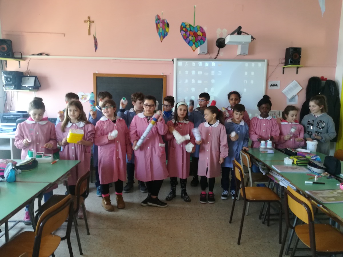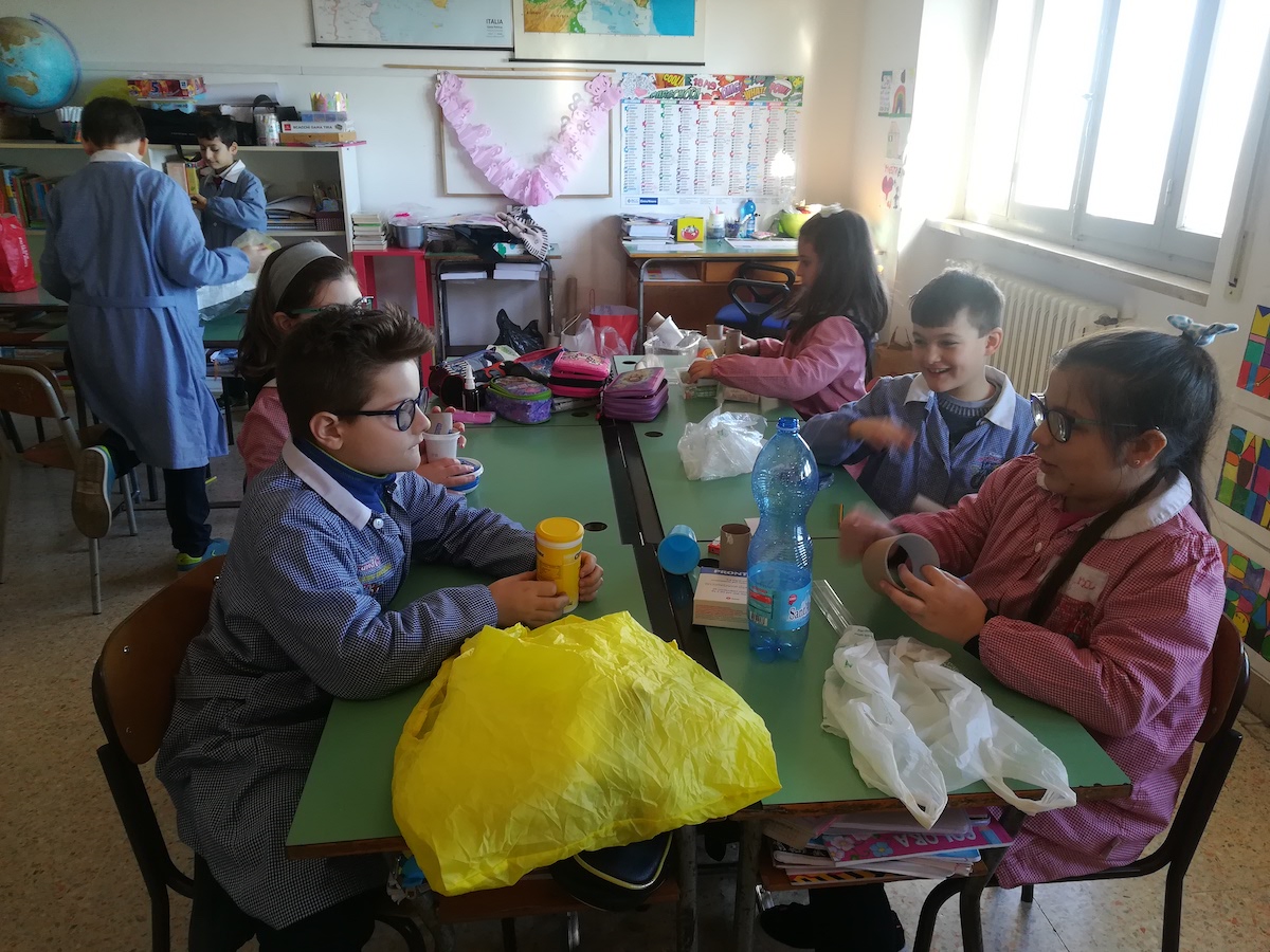 Gli allievi, sotto la guida dell’esperto Giuseppe della Ludoteca Riù di Santa Maria Nuova, si sono divertiti a costruire alcuni strumenti musicali utilizzando materiale da riciclo portato da casa. Nel corso delle giornate, gli alunni hanno via via perfezionato ed abbellito gli strumenti, che potranno poi essere utilizzati durante le lezioni di musica e nelle ore di gioco libero.