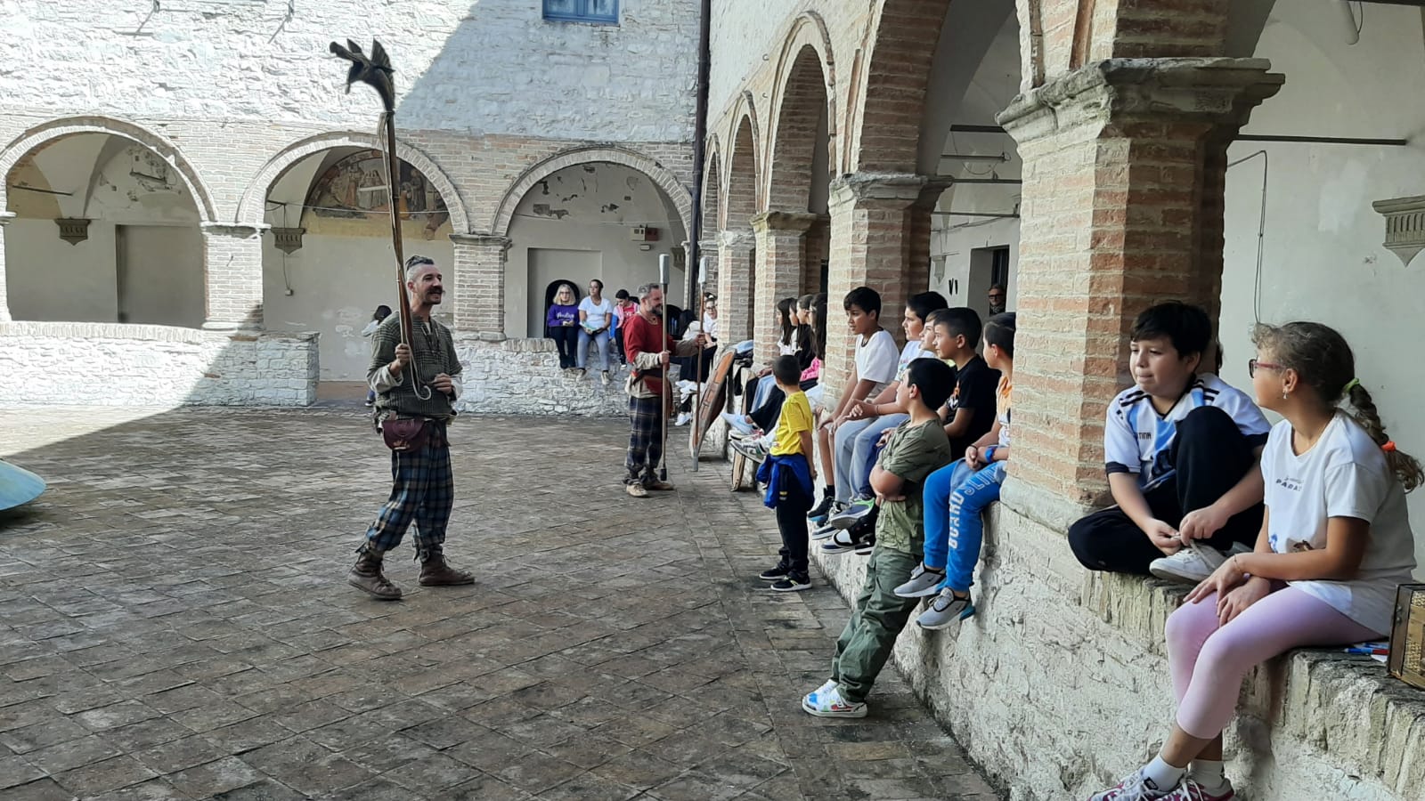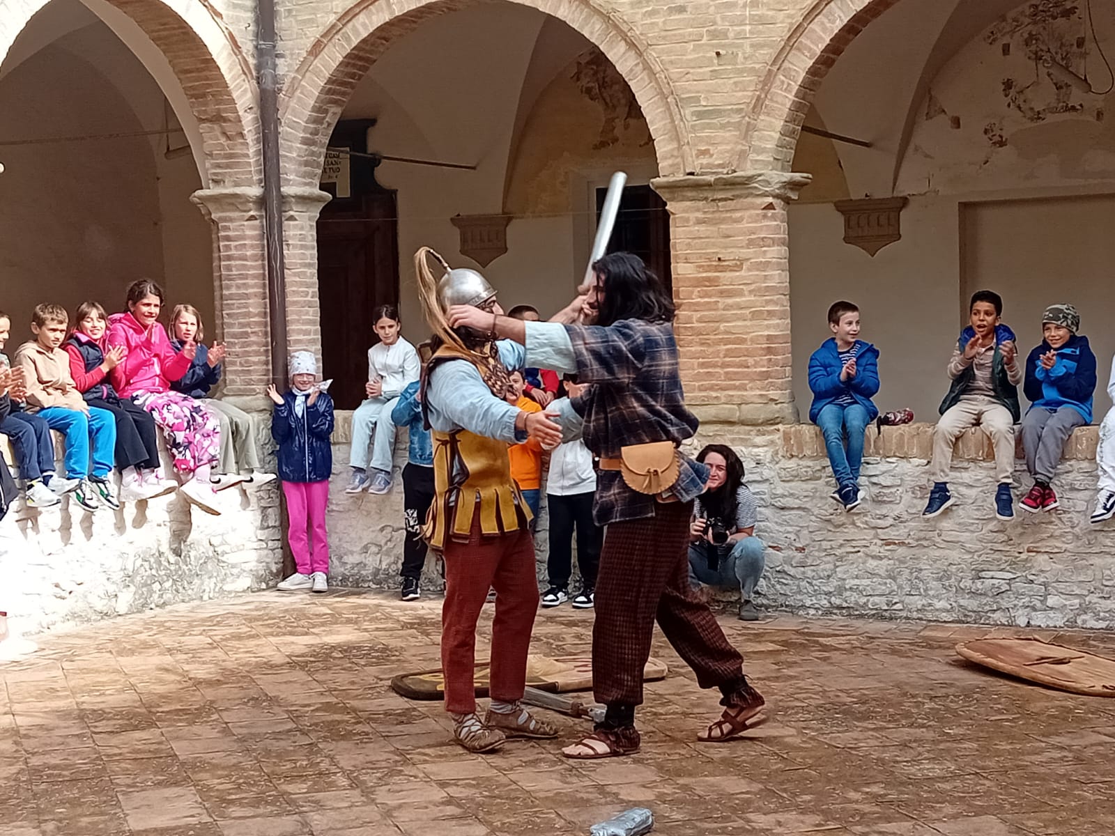 L’Associazione Epika, in collaborazione con il Museo Archeologico Statale di Arcevia, ha coinvolto gli alunni prima un una visita guidata nella sezione celtica del museo dove sono conservati i reperti dell’antica necropoli dei Galli Senoni venuta alla luce grazie agli scavi eseguiti tra il 1894 e il 1899, poi in una serie di giochi divertenti grazie ai quali i bambini hanno sperimentato il tiro con l’arco e alcuni giochi da tavolo. Infine i rievocatori hanno simulato un combattimento trasportando gli alunni indietro nel tempo.