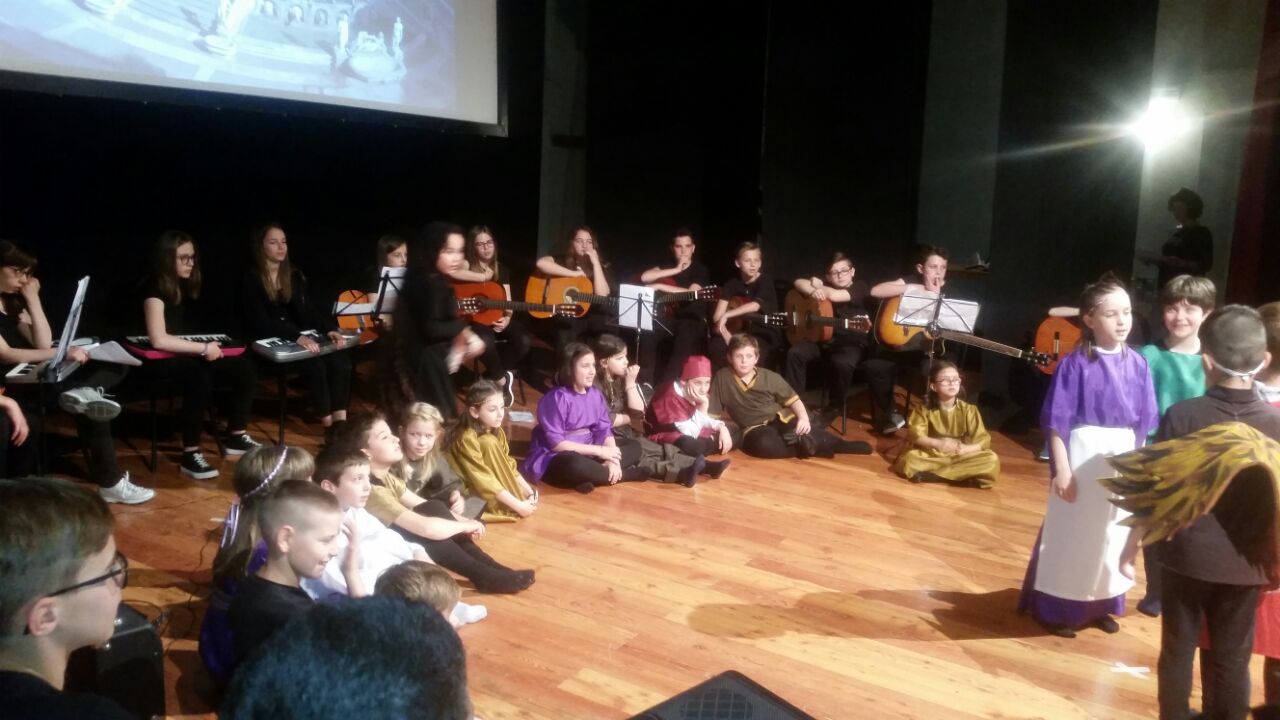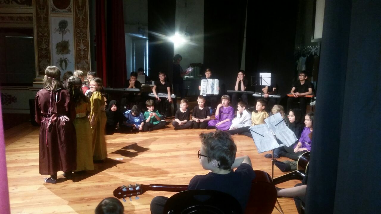 I bambini, oltre a recitare e danzare, hanno potuto suonare e cantare con gli alunni più grandi sotto la direzione dell’insegnante di musica professoressa Maria Beatrice Calai.