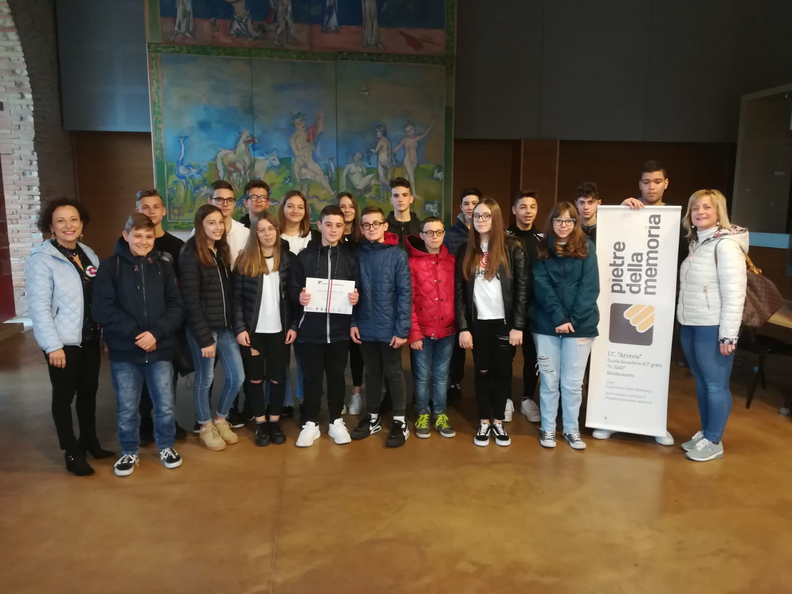 Ai fini del concorso, nella sezione “Base” (ovvero di catalogazione di pietre e fonti storiche) abbiamo meritato il terzo posto tra le Scuole secondarie di I grado; mentre nella sezione “Percorsi”, quella con i prodotti più complessi, che vede partecipare ragazzi dalla Primaria alla Secondaria di II grado, abbiamo ricevuto una menzione d’onore. La premiazione è avvenuta il 9 maggio alla Mole di Ancona insieme a tanti altri ragazzi, come noi “Esploratori della memoria”.