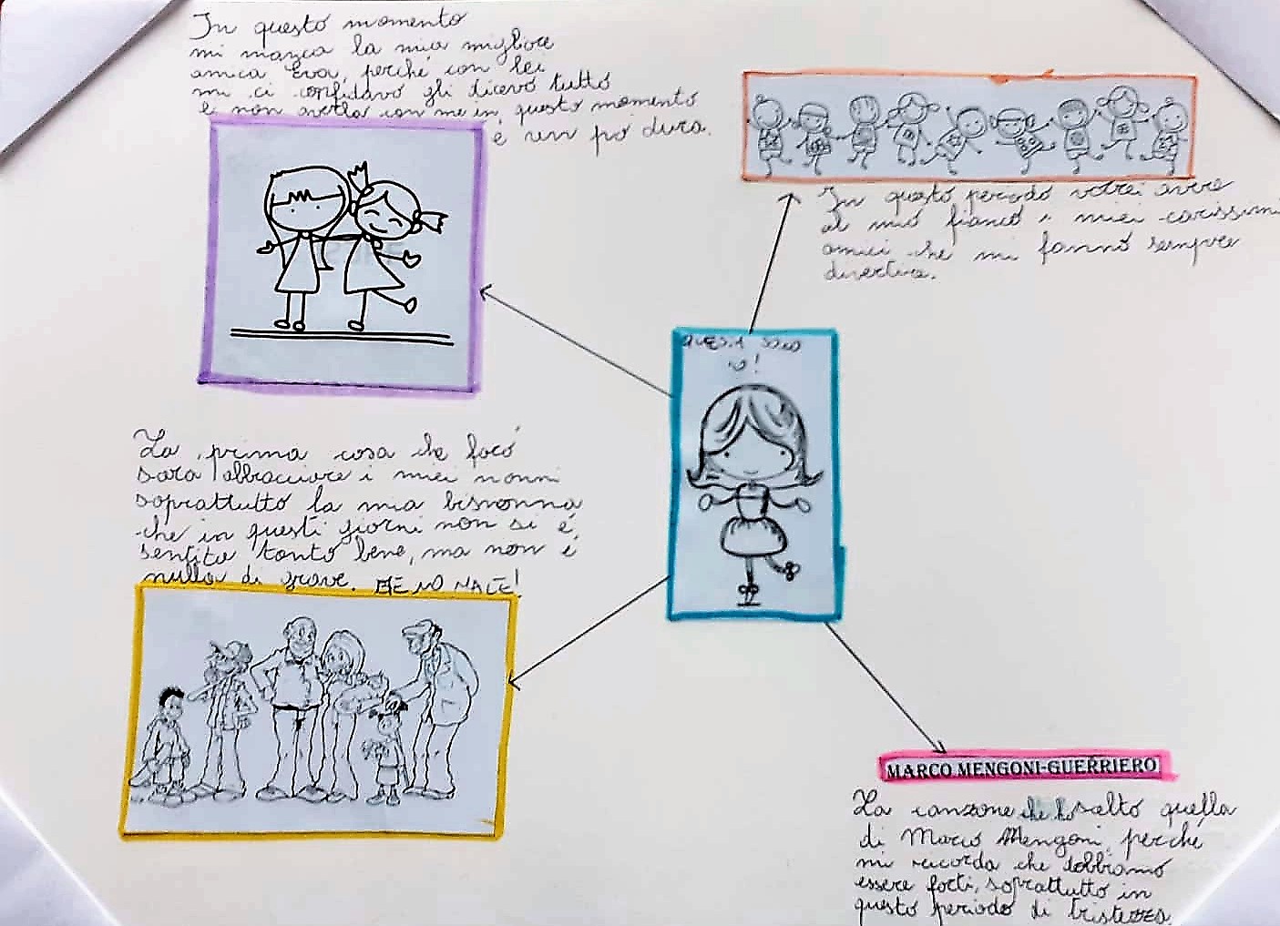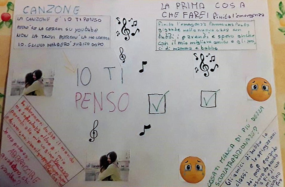Ho creduto importante uscire dalla logica del "compito" e del "voto", per ascoltarli semplicemente e far capire che, oltre alla famiglia, anche nella scuola potevano trovare persone disposte ad accogliere le loro eventuali paure o anche la loro forza e spensieratezza, pure in una situazione così spiazzante.