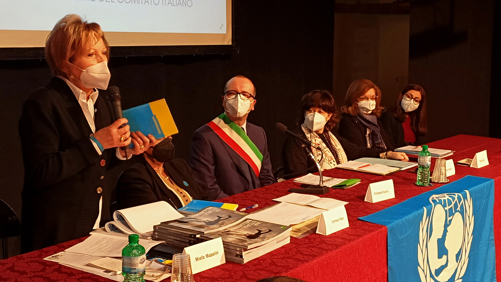 Gli studenti dell’attuale terza, che avevano partecipato al concorso quando frequentavano la prima e che erano stati premiati on line lo scorso anno scolastico in collegamento con il Ministro dell’Istruzione Patrizio Bianchi, hanno ricevuto un pregevole attestato su papiro dalla presidente nazionale UNICEF Carmela Pace, alla presenza della presidente provinciale Paola Guidi e regionale Mirella Mazzarini.