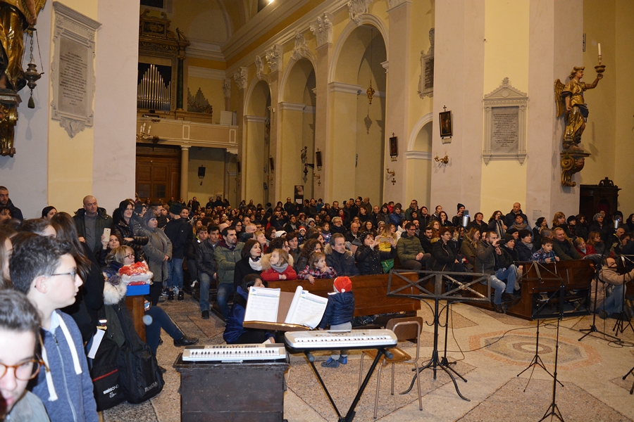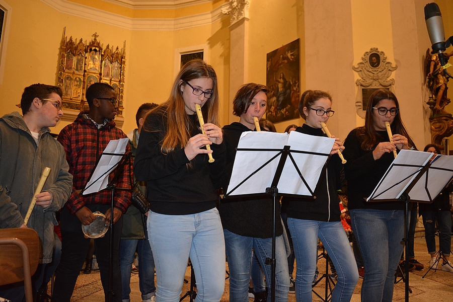 Dopo una breve saluto del Sindaco Andrea Bomprezzi, il coro degli alunni della scuola primaria, insieme alla classe prima della scuola secondaria, si è cimentato in canti inneggianti al Natale e alla pace universale, alternandosi con le esibizioni di musica strumentale dei ragazzi delle classi seconde e terze della scuola secondaria.