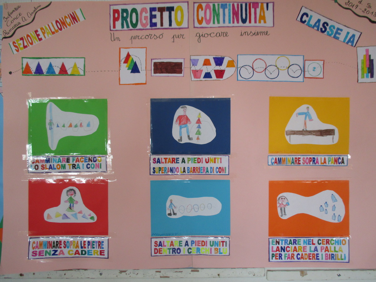 All’insegna della continuità educativa e didattica le insegnanti Carotti e Coppari della Scuola dell’infanzia di Conce e le insegnanti Bucci e Petronilli della scuola primaria A. Anselmi di Arcevia hanno fatto incontrare la sezione “Palloncini rossi” e la classe IA per la realizzazione del progetto “ Divertimento… in movimento“.