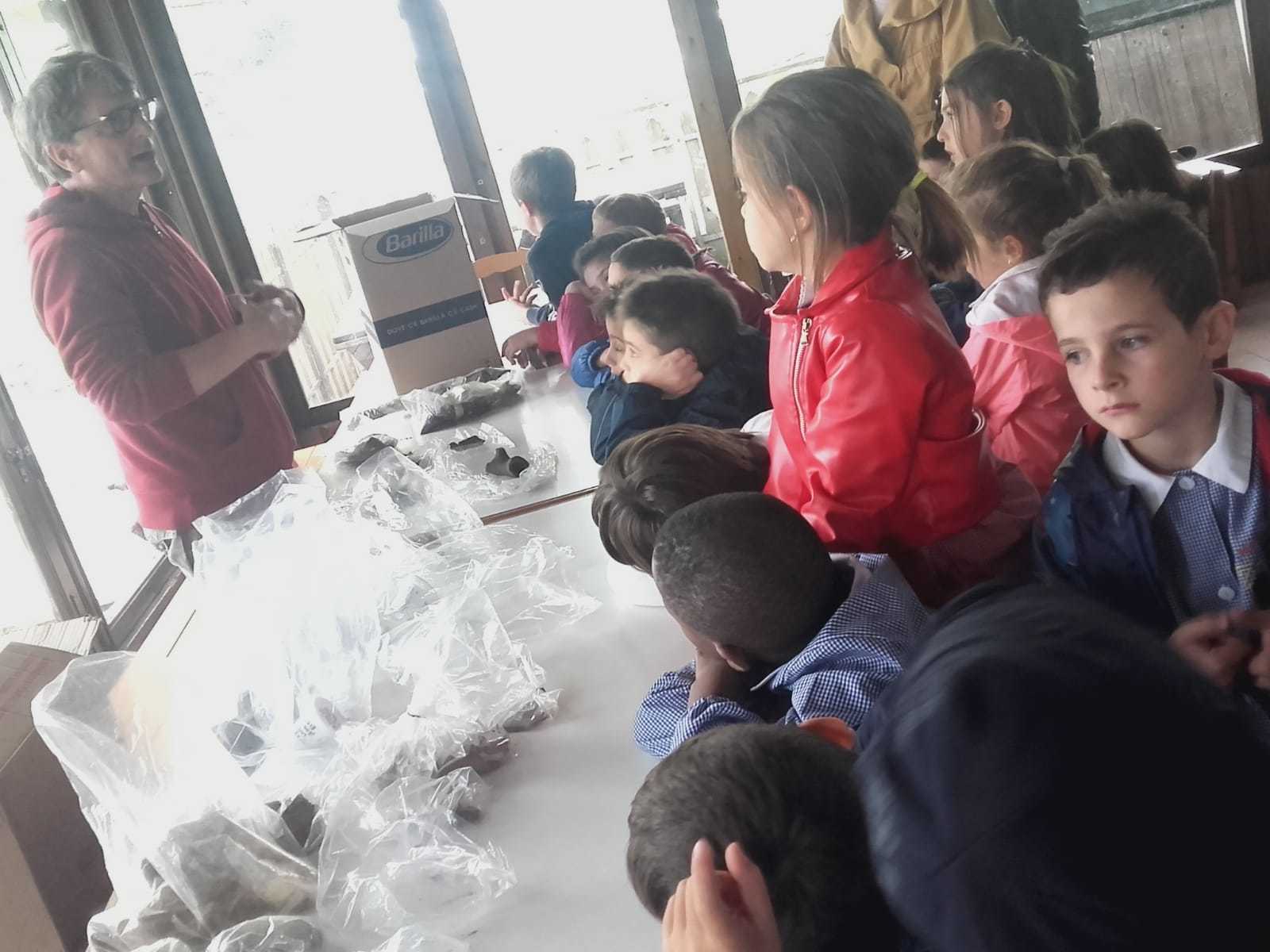 Gli alunni sono stati invitati anche ad osservare i reperti ritrovati durante questa campagna di scavi: parti di vasellame in terracotta, ossi di cacciagione e di animali allevati, ossa umane ritrovate in una sepoltura, resti di antiche macine e addirittura una minuscola ma preziosissima perlina in pasta vitrea che documenta i rapporti di scambio con luoghi lontani.