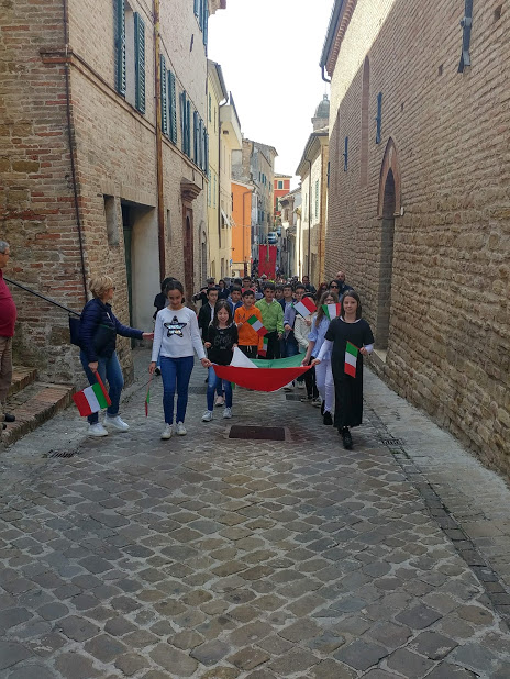 I bambini della scuola Primaria, con le bandierine tricolori, hanno sfilato in corteo partendo da Piazza Gramsci per le vie del centro storico, accompagnati dai loro genitori, dagli insegnanti, dalla banda cittadina e dalle persone del luogo. Il corteo ha poi raggiunto il Monumento ai Caduti sito in piazza IV Novembre dove è avvenuta la deposizione della corona. Ha officiato la Santa Messa il parroco emerito Don Severino Sebastianelli. I bambini delle classi quinte e i ragazzi della Scuola Secondaria di primo grado hanno poi letto e condiviso pensieri e poesie. Era presente anche il minisindaco del C.C.R. che ha espresso una riflessione sul significato che tale commemorazione riveste per le nuove generazioni quale mantenimento della pace e difesa della libertà. Ha presenziato alla cerimonia il sindaco Arduino Tassi che ha rivolto parole di elogio ai ragazzi presenti e agli insegnanti per il loro impegno ricordando il valore importante della memoria. Al termine è intervenuto il maresciallo Italo Cati, il quale nel suo intervento ha sottolineato l’importanza del gesto eroico di molti giovani soldati e volontari, compiuto nella guerra di Liberazione.