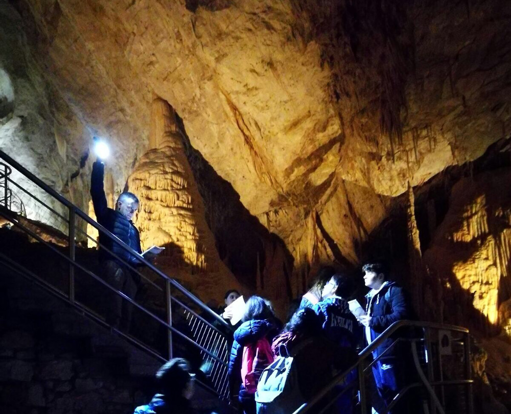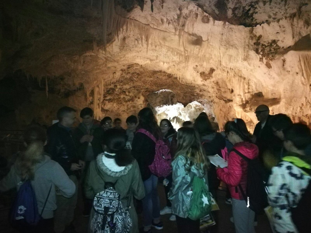 A conclusione di un percorso didattico, nell'ambito delle Scienze della Terra, che li ha visti impegnati nello studio delle forze che modellano la superficie terrestre e dei fenomeni che portano alla formazione delle rocce sedimentarie, i ragazzi hanno potuto ammirare in tutta la loro sconvolgente bellezza le concrezioni presenti nelle Grotte, mentre la voce esperta della guida spiegava il processo della loro formazione.