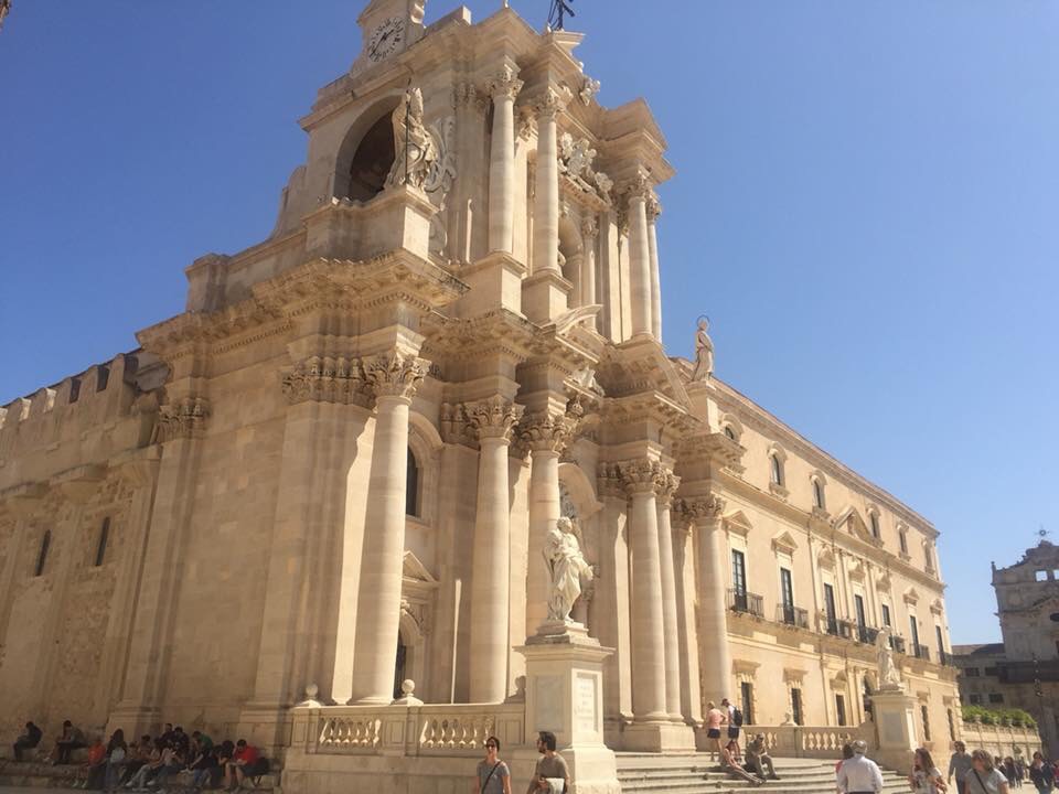 Il sole non è ancora tramontato sulla nostra giornata (ci mancherebbe, è primo pomeriggio!) e così, dopo un giretto sull’isola di Ortigia, visitiamo il Duomo di Siracusa, dove ad attenderci sta un’altra guida che ci porta alla scoperta dell’immenso patrimonio artistico che risiede all’interno della chiesa: colonne doriche e corinzie, affreschi e splendide navate edificate e ritoccate durante i secoli della lunga storia della città, che ha visto il suo duomo trasformato in moschea, chiesa e minareto a seconda delle varie dominazioni.
