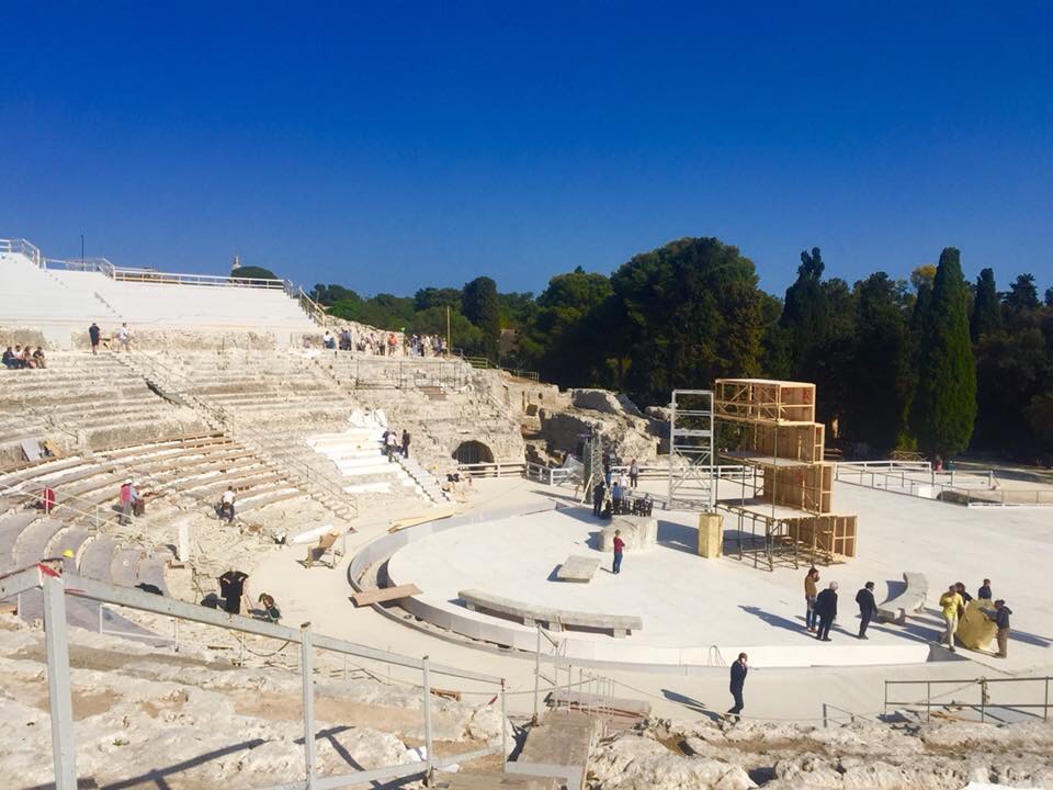 A seguito di una passeggiata per la via che costeggia il caratteristico porto, ritroviamo la guida che questa volta ci porta nella Neapolis e più precisamente nella zona degli scavi archeologici, dove possiamo ammirare il teatro greco. Quando arriviamo, degli operari stanno montando ulteriori spalti per la stagione teatrale che inizierà a maggio e che vedrà la rappresentazione di spettacoli, commedie e tragedie greche. E’ emozionante sedere sulle rovine di quello che un tempo era stato uno dei luoghi più importanti di tutta Siracusa; mentre la guida ci parla della funzione degli spettacoli, di come venivano rappresentati e ci illustra le varie parte della struttura.