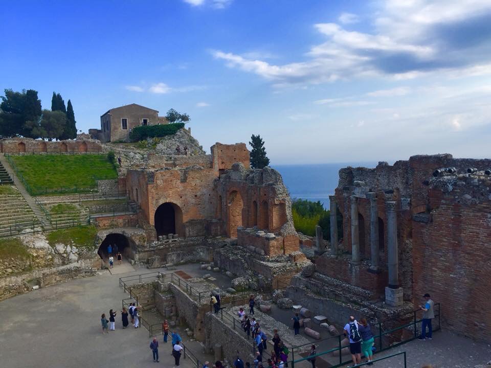 Alle 15:45 partiamo per Taormina, una città della Sicilia dove una gentilissima guida ci porta a vedere lo splendido teatro greco-romano, con la sua splendida vista sul mare ed il suo carico di secoli di storia, di costruzioni, distruzioni e ristrutturazioni, fino a diventare come è possibile osservarlo oggi.