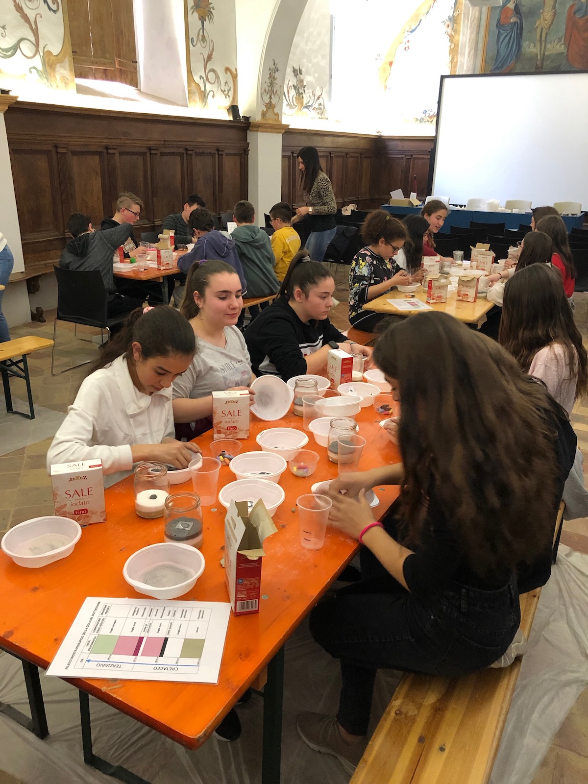 I ragazzi sono stati guidati, all’interno della mostra “Extinction”, allestita a Gubbio, attraverso gli spettacolari modelli a grandezza naturale dei grandi rettili, i pannelli e i contenuti multimediali, hanno ammirato i fossili e i calchi, si sono confrontati con “il mestiere del paleontologo”, attraverso uno specifico laboratorio, e hanno realizzato una “propria” successione stratigrafica, con relativo contenuto fossilifero.